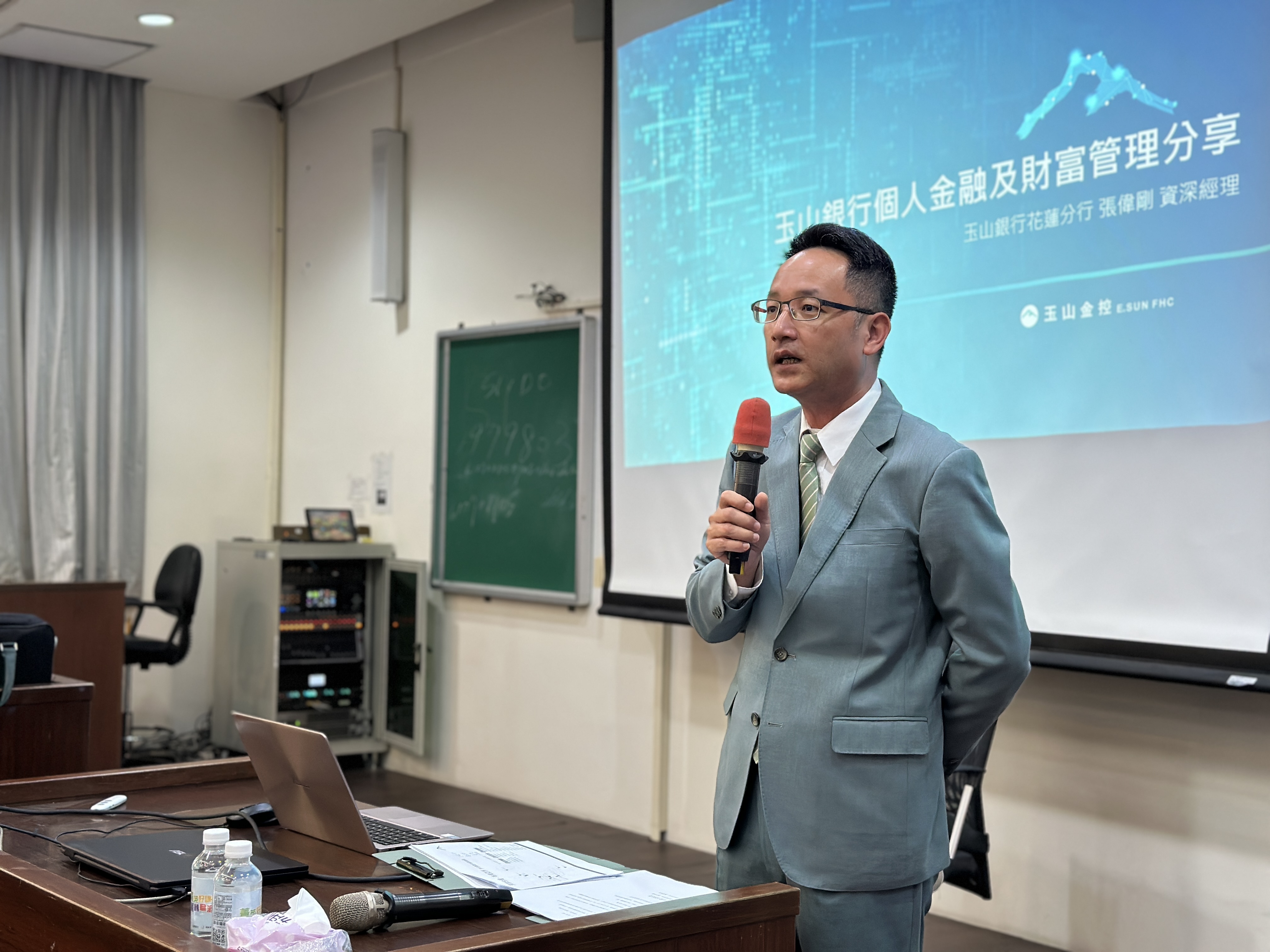 首先,114年10月17日主講人為玉山銀行花蓮分行張偉剛資深經理與劉副理,以「玉山銀行個人金融及財富管理分享」為題進行分享,內容聚焦於個人金融概念、理財工具選擇與財富管理策略。講師首先介紹玉山銀行的相關業務範疇,包括了日漸成熟的海外市場;劉副理介紹玉山銀行提供的金融服務,包括存款、信貸、投資、保險與數位金融工具,並以實務案例說明青年常見的財務課題,也強調理財的核心在於「提早規劃、分散風險、量力而為」。透過實務案例與畢業系友的職場經驗分享,讓學生們對銀行業的職場生活有了更深刻的了解。